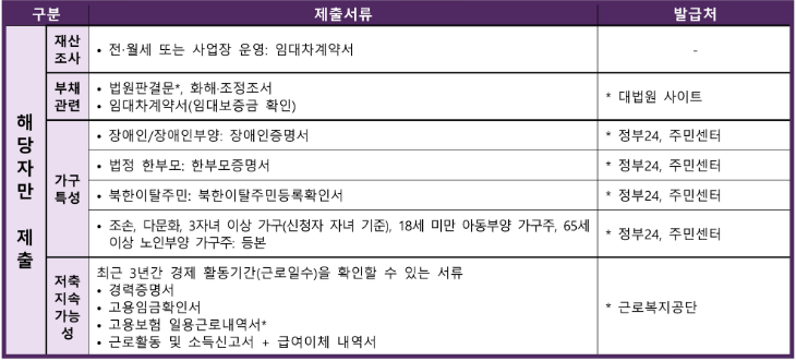 청년내일저축계좌 재산 관련 제출 서류는 해당자만 제출을 하면 됩니다. 전월세 또는 사업장 운영을 할 경우 임대차계약서가 있어야 하고, 부채관련해서는 법원판결문, 화해 및 조정조서 등이 필요합니다.