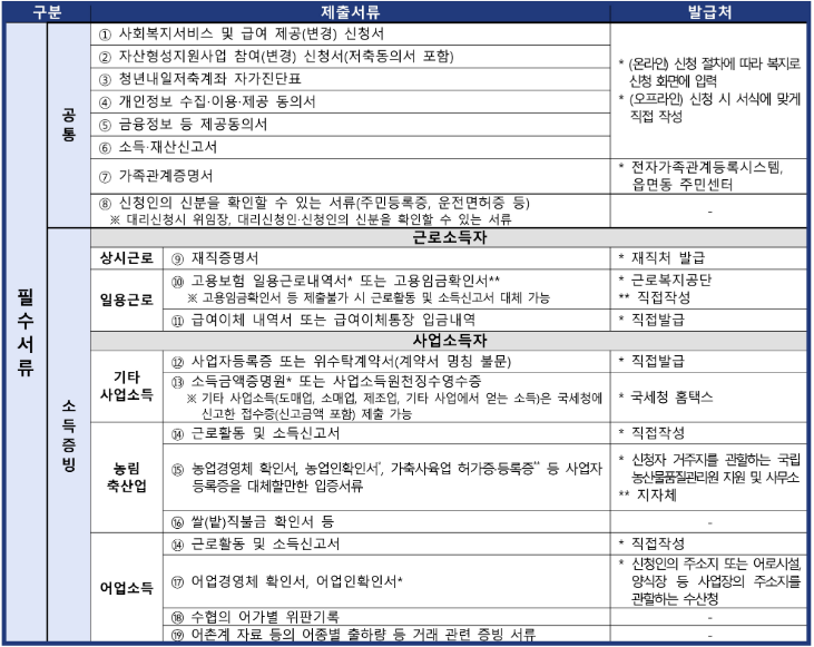 농림 축산업에 종사하시는 분들은 근로활동 및 소득신고서, 농업인확인서, 가축사육업 허가증 등이 있어야 하고, 어업에 종사하시는 분들은 어업경영체 확인서, 어업인확인서가 필요합니다.
